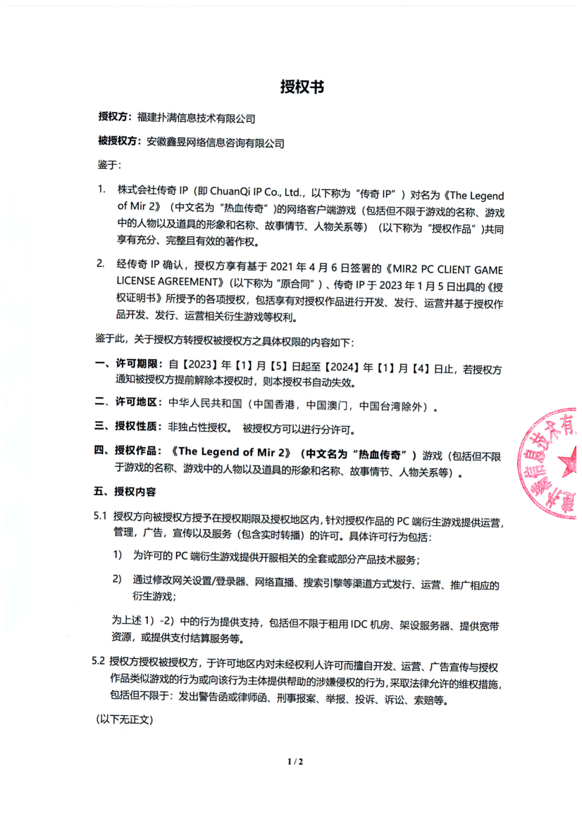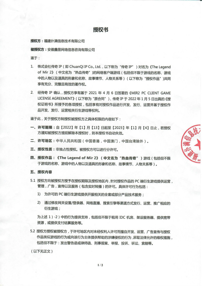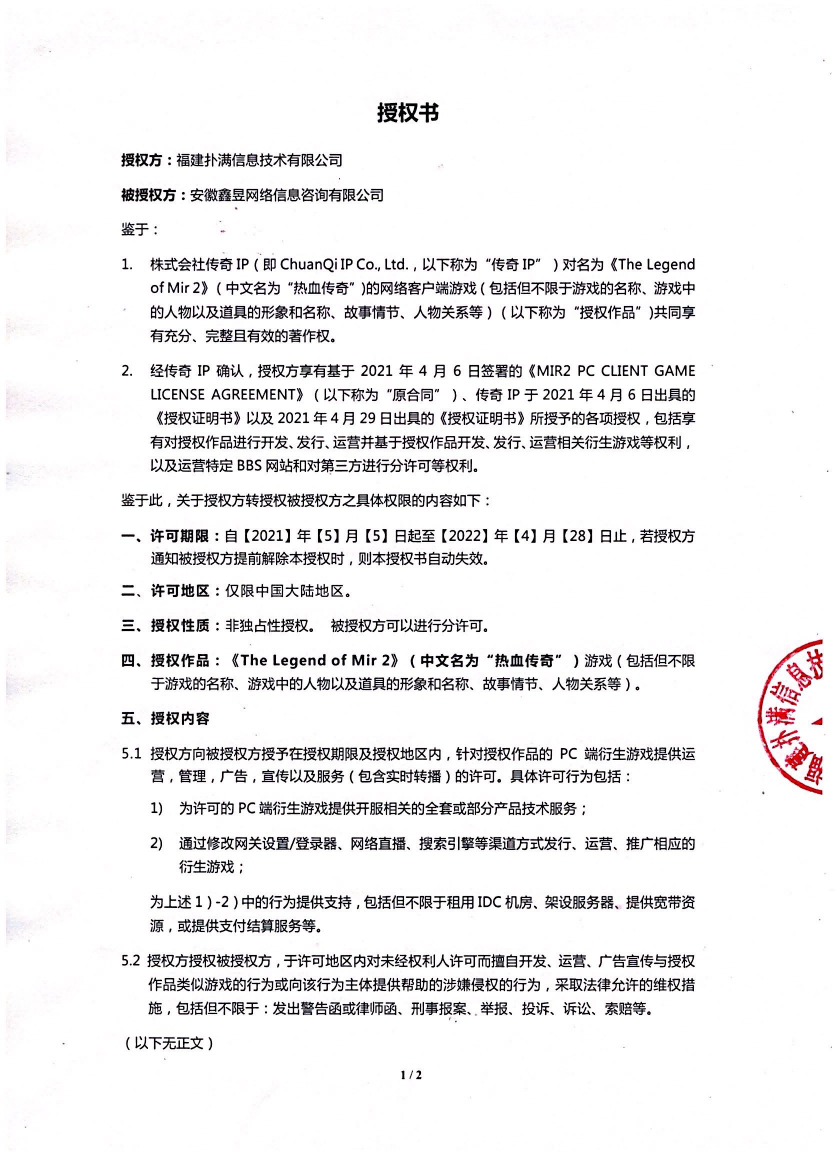 關(guān)于對《The Legend of Mir 2》(熱血傳奇) 衍生品游戲直播的嚴正聲明