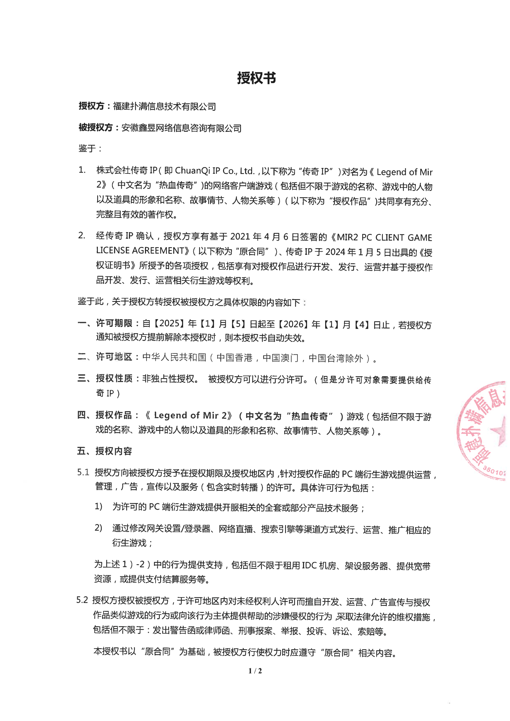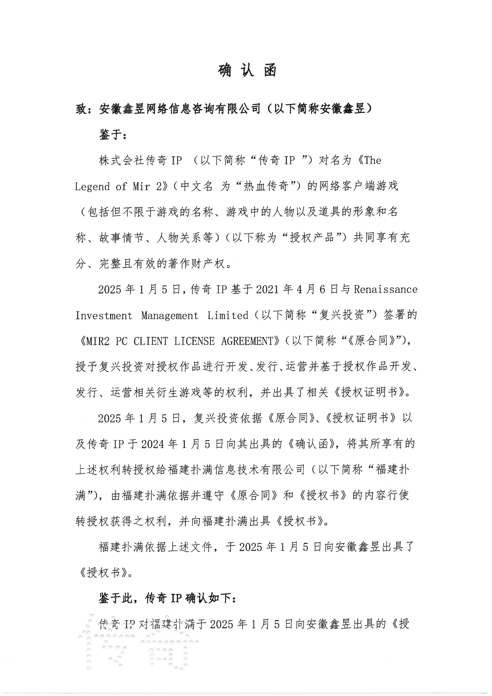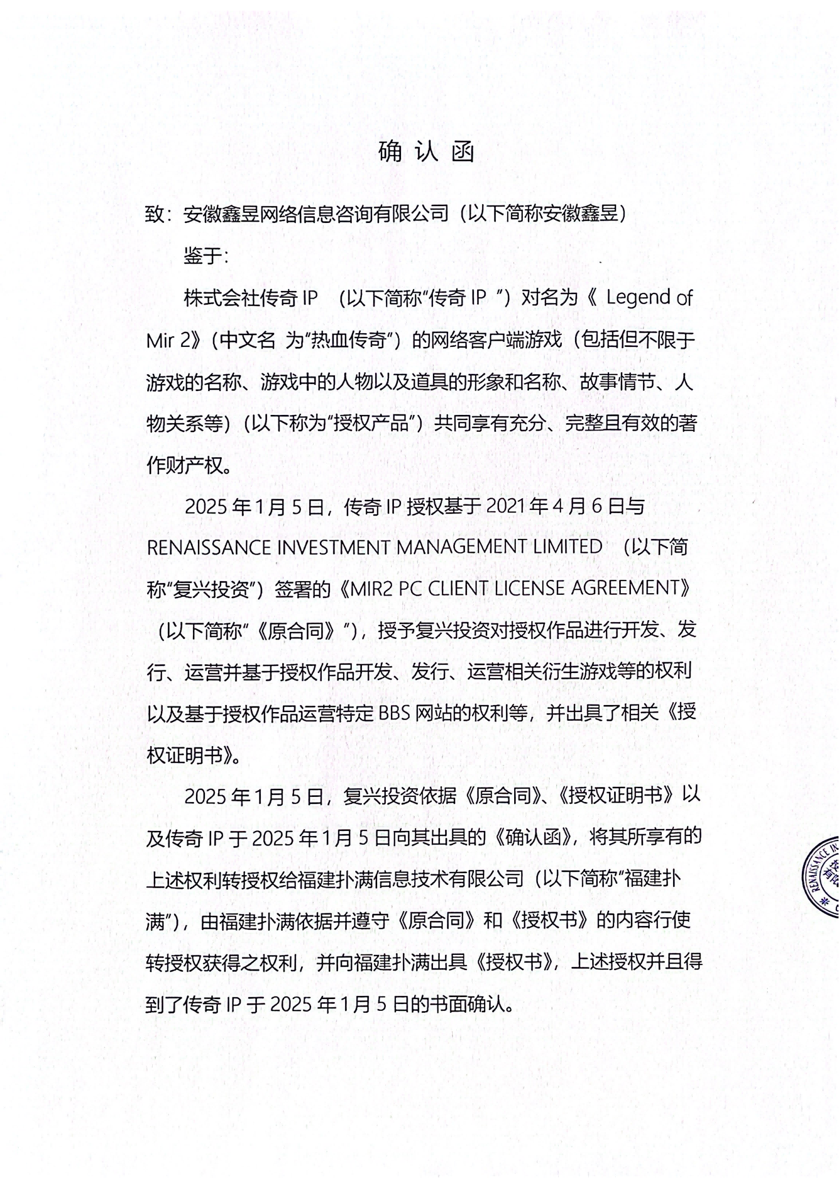 關(guān)于對《The Legend of Mir 2》(熱血傳奇) 衍生品游戲直播的嚴正聲明
